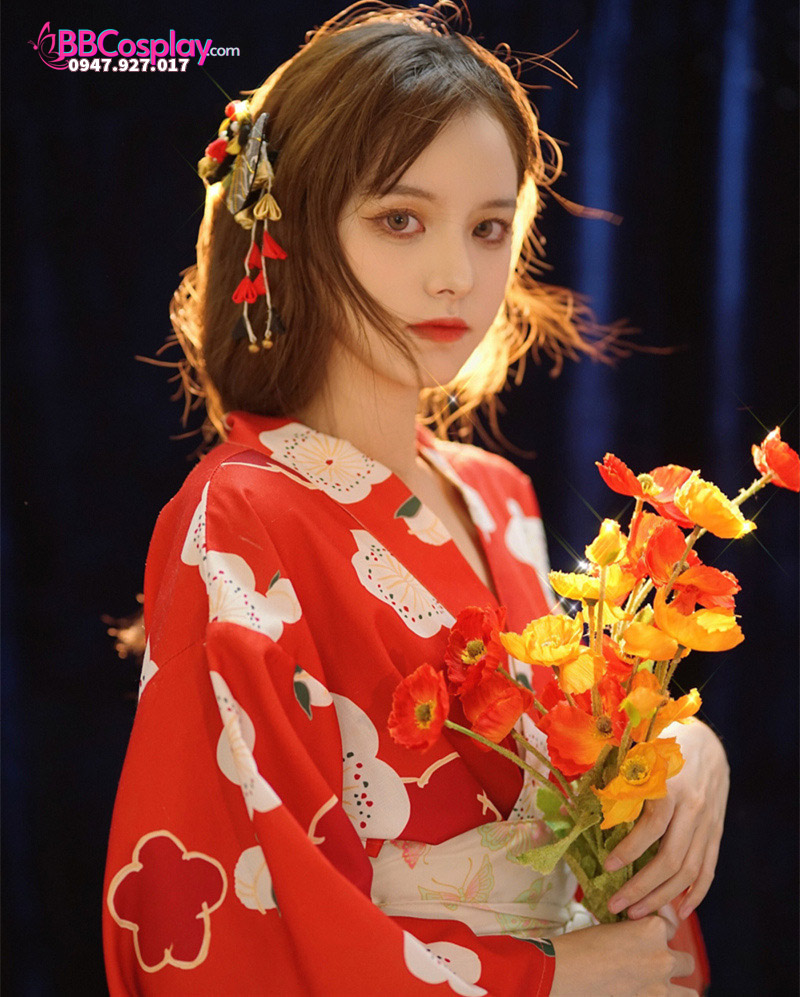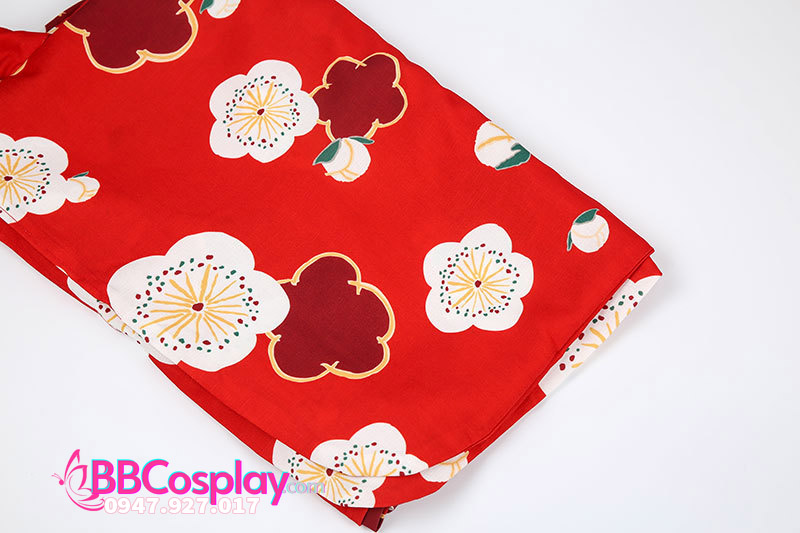 Yukata Chuẩn Nhật Đỏ Hoa Đào