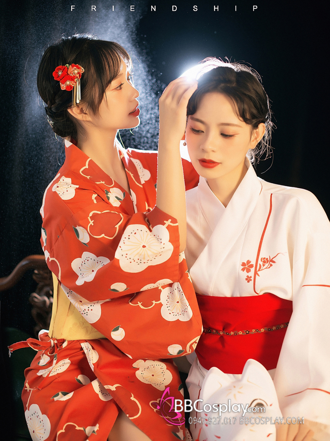 áo + obi ( mẫu tự chọn) + 1 dây đai phụ +1 kanzashi ( ngẫu nhiên)+ guốc gỗ + lót cổ + obi pad + cho mượn kèm quạt xếp