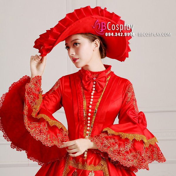 Trang Phục Nữ Bá Tước Đỏ Ren Vàng Đồng