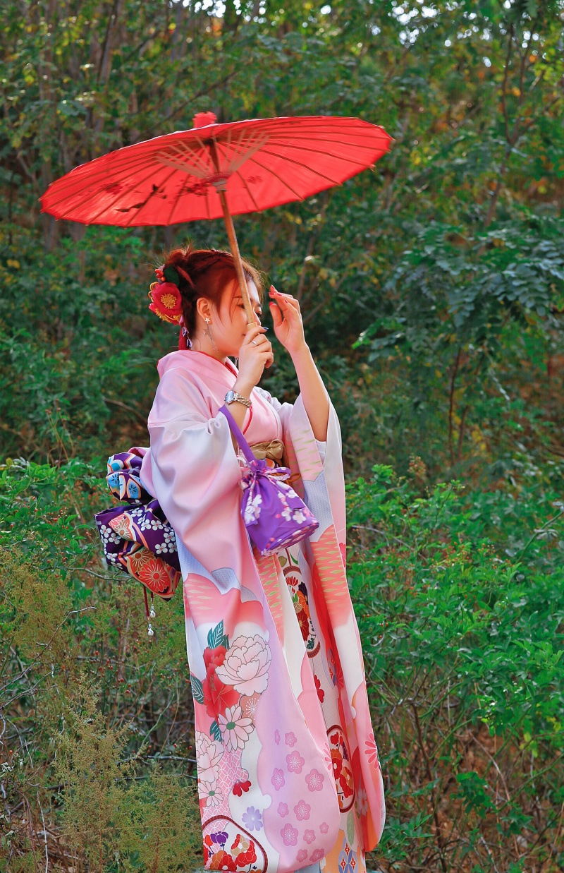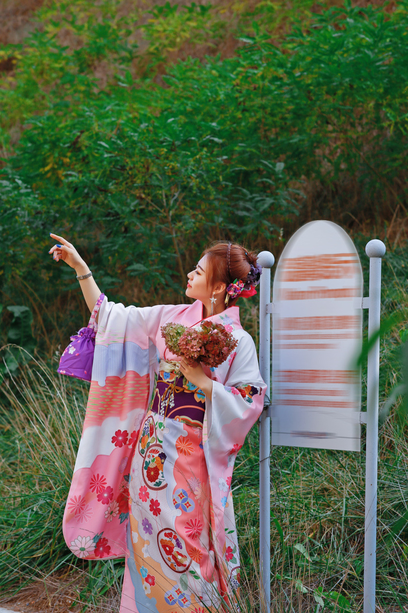 Kimono Truyền Thống Chuấn Nhật Màu Hồng