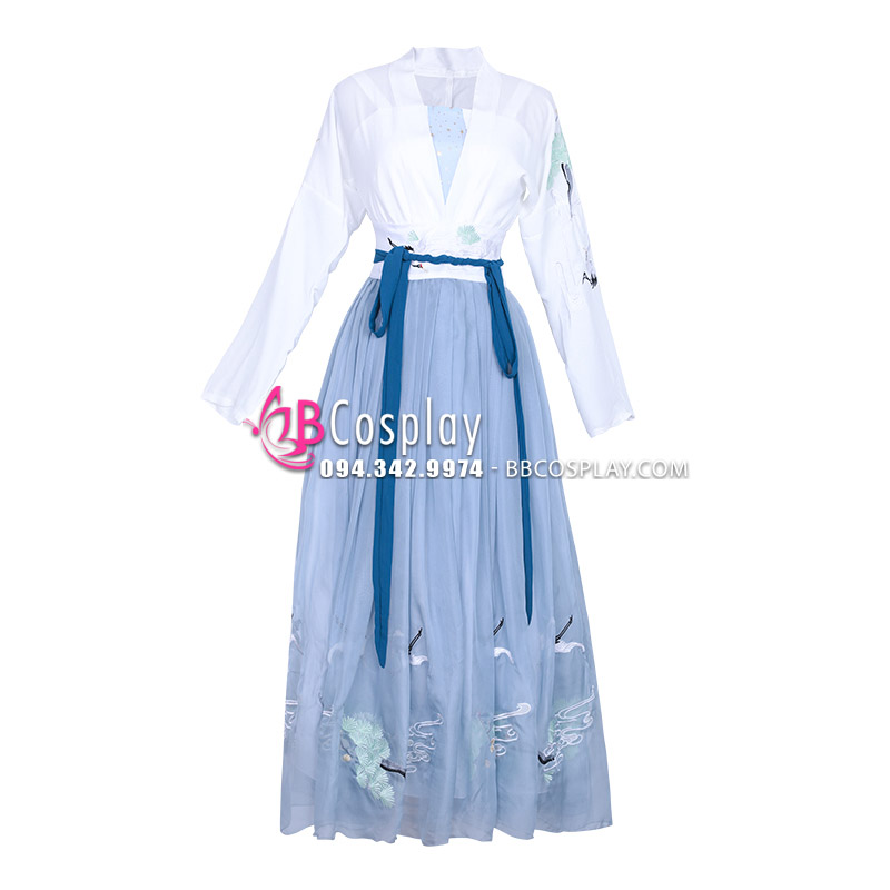 Hán Phục Bạch Hạc Du Tiên Chiết Eo Váy 6M Thêu