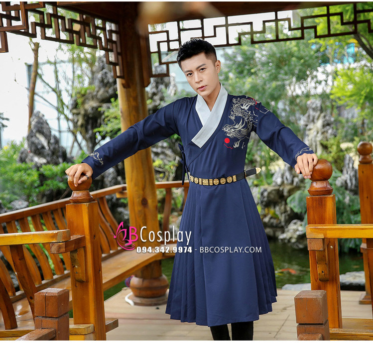 Hán Phục Nam Cách Tân Xanh Đậm Thêu Rồng