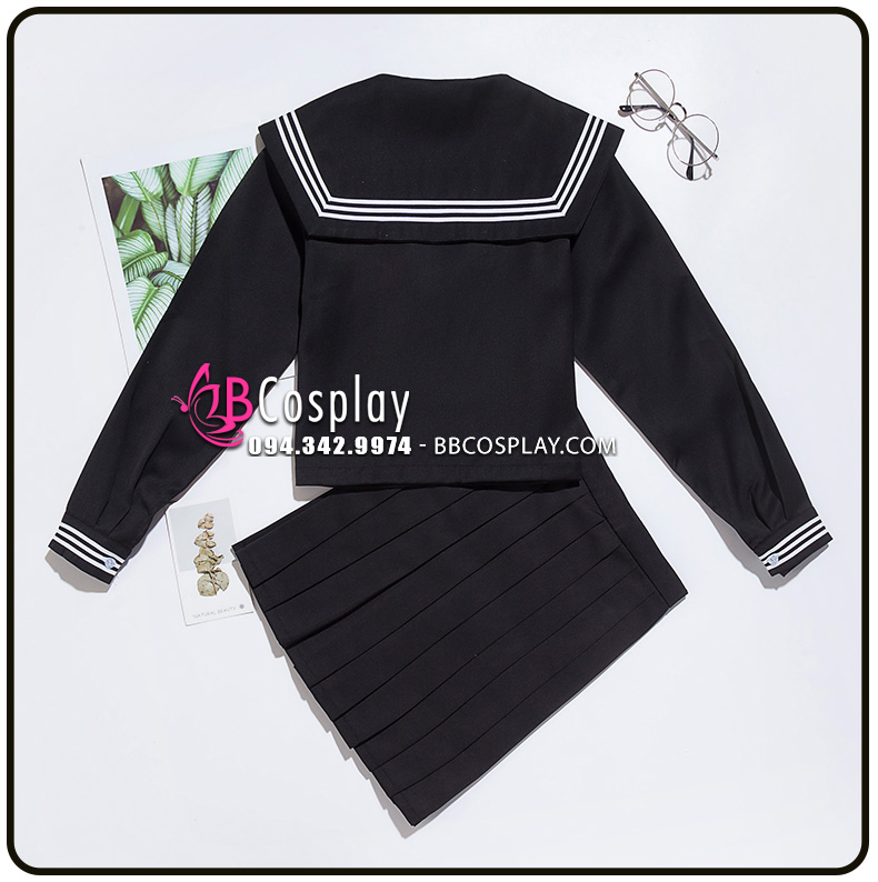 Đồ Seifuku Nữ Sinh Tay Dài Áo Đen Váy Đen - 3 Sọc