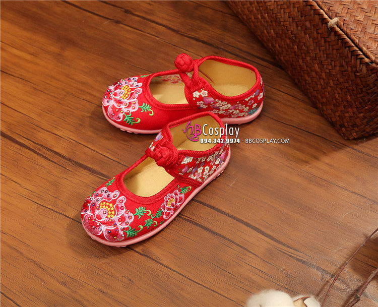 Hài Vải Trẻ Em Đỏ Thêu Hoa Size 31