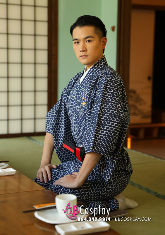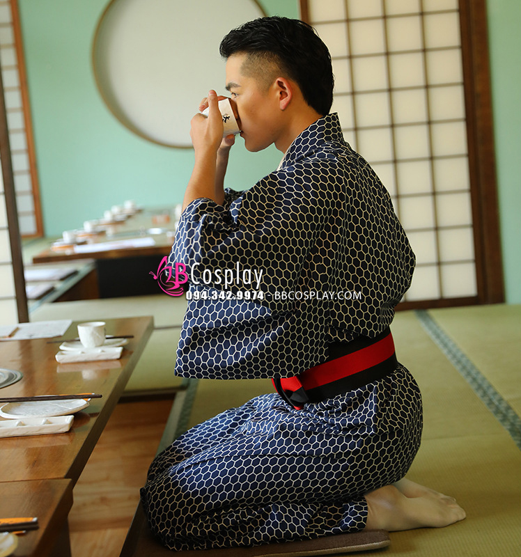 Nagagi Trắng Caro Màu Be - Yukata Nam Trắng Caro Màu Be