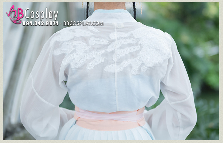 Đồ Nàng Hầu Maid Xanh Dương Tạp Dề Trắng Kèm Nhiều Nơ