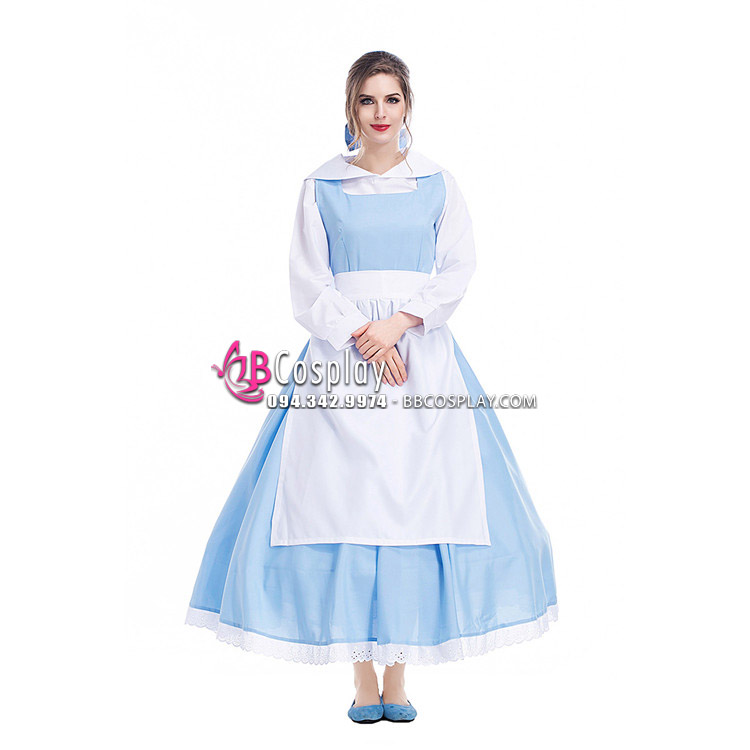 Đầm + áo trong + tạp dề + nơ (hàng may tại VN)