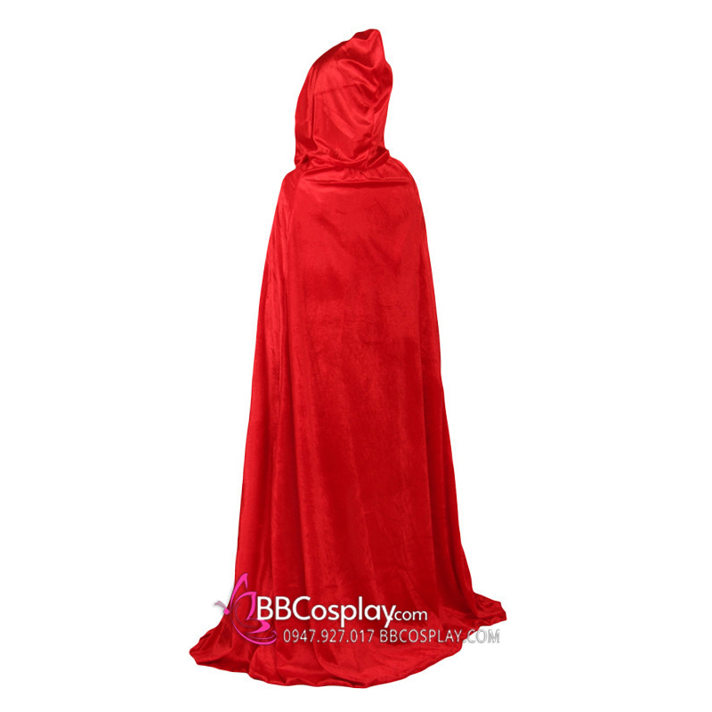 Áo Choàng Đỏ Nỉ Nhung Có Nón Dài - Màu Đỏ Tươi