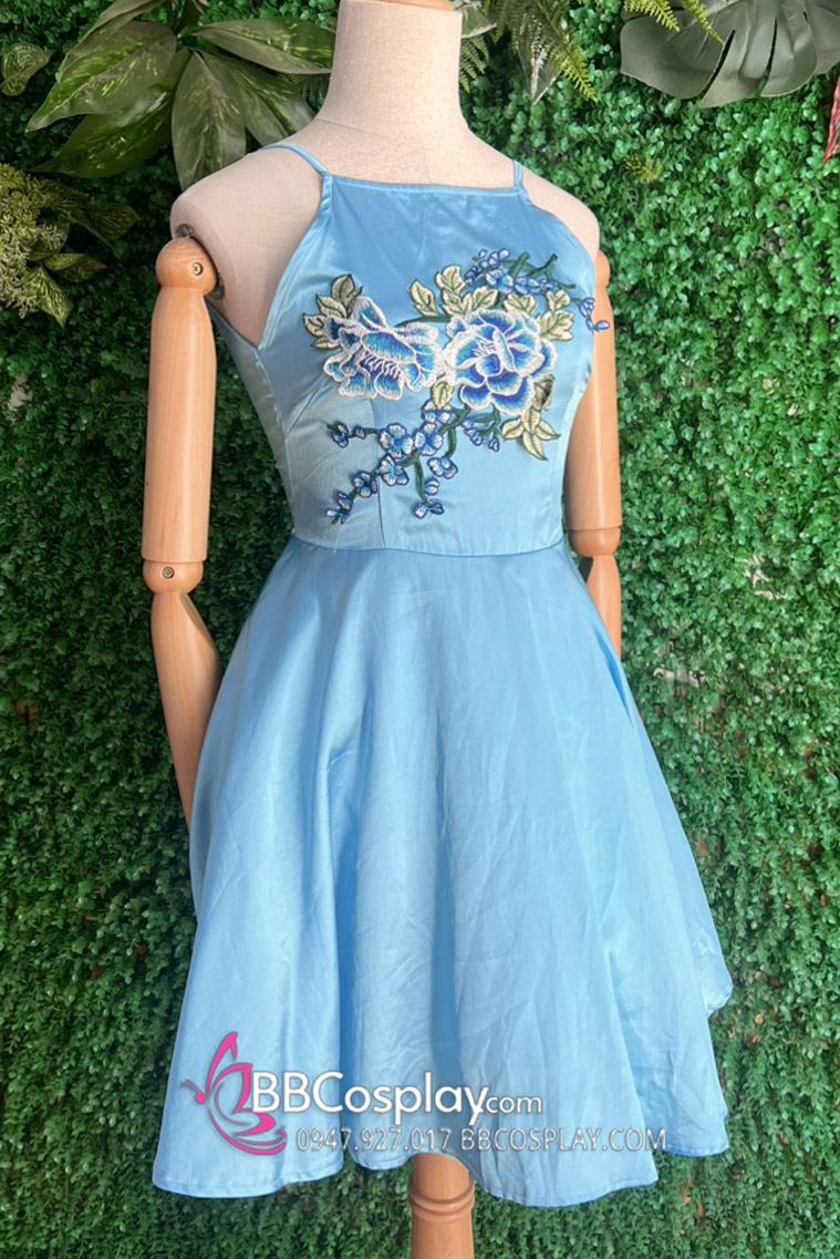 Đồ Nàng Hầu Maid Xanh Dương Tạp Dề Trắng Kèm Nhiều Nơ