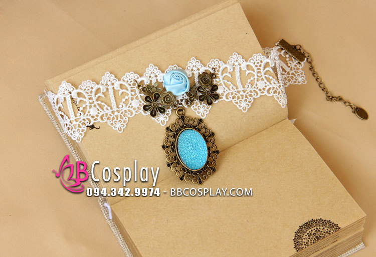 Vòng Cổ Lolita Ren Mặt Đá Xanh Sky Jasmine