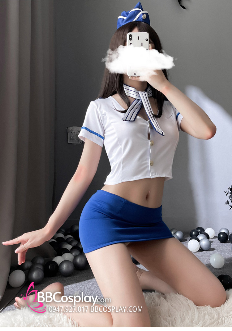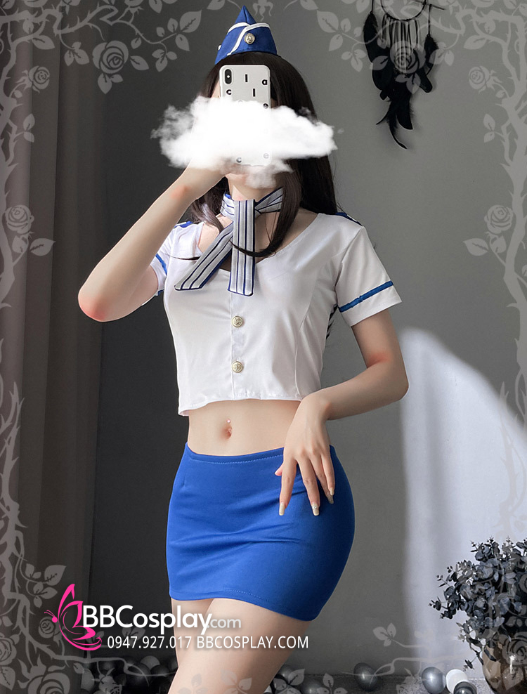 Đồ Tiếp Viên Sexy Áo Trắng Váy Xanh