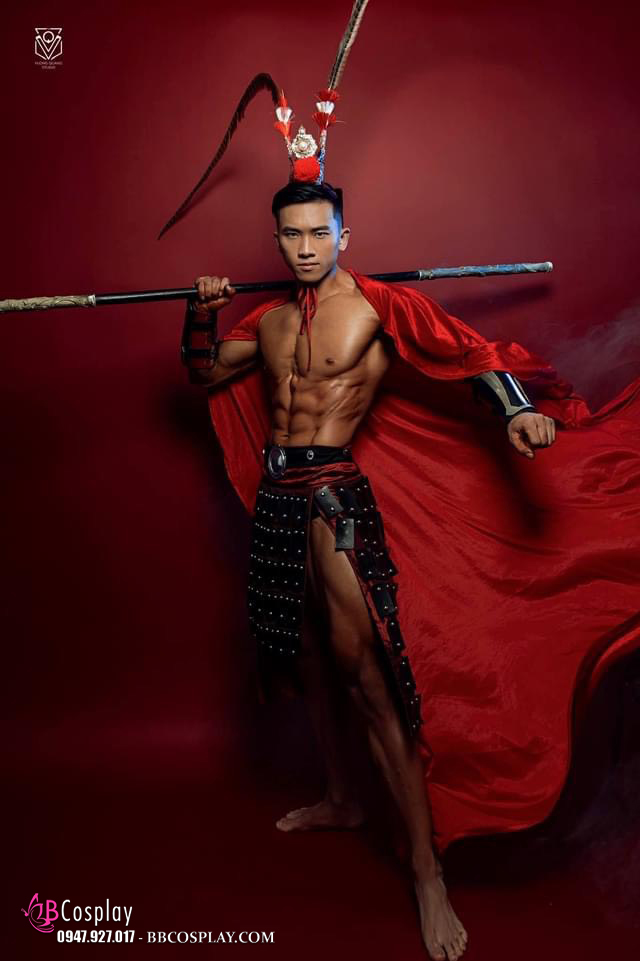 Trọn bộ : giáp lưng quần + gậy như ý + áo choàng + mão + 2 lông chim trĩ