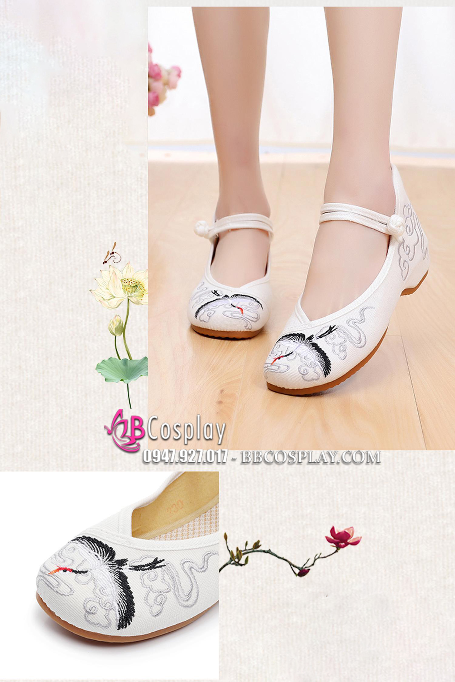 Giày Vải Thêu Hạc Trắng Đế 3.5cm Size 37