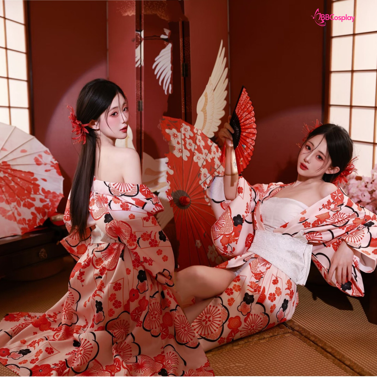áo + obi (mẫu xịn) + dây đai phụ + 1 kanzashi ( ngẫu nhiên) + cho mượn kèm quạt xếp