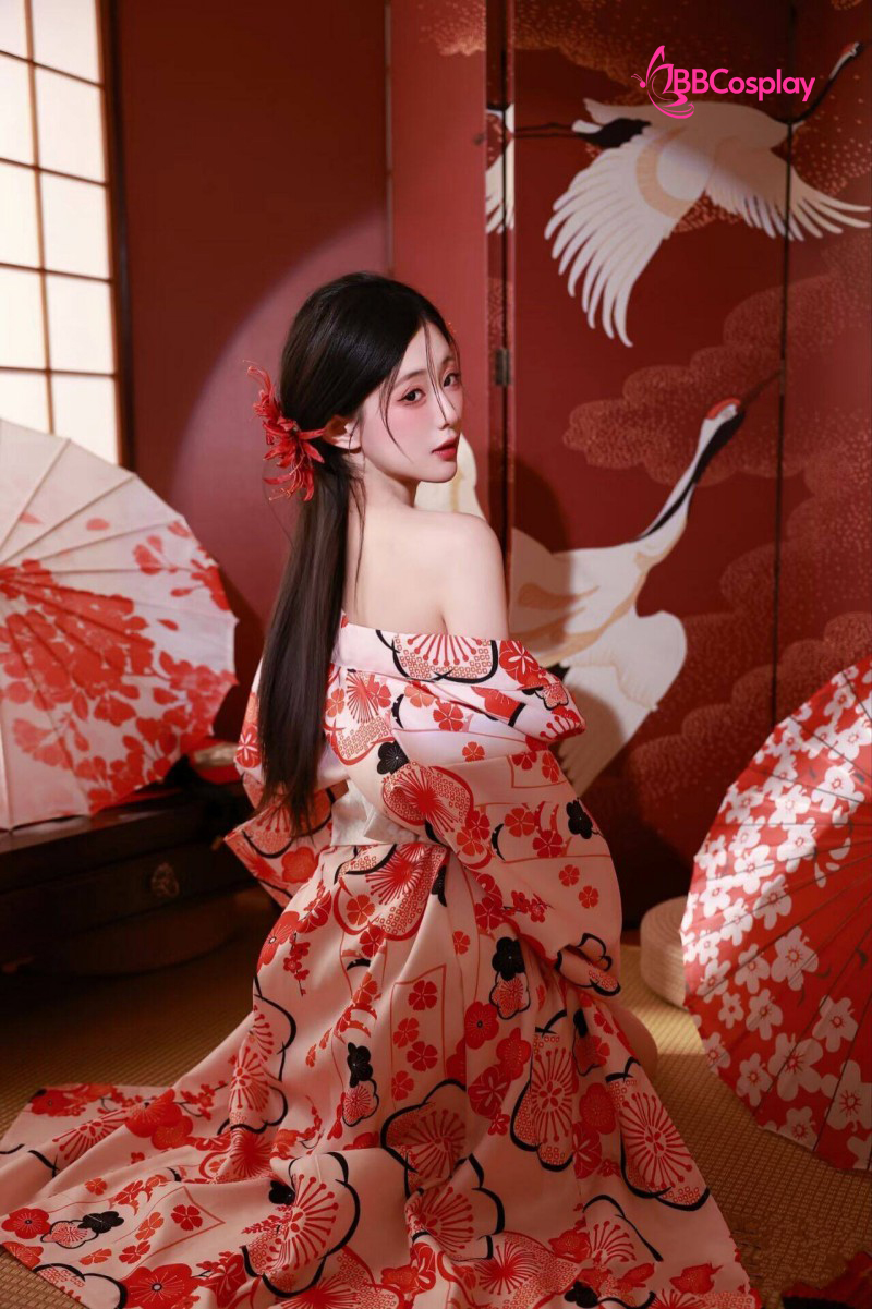 áo + obi ( mẫu tự chọn) + 1 dây đai phụ +1 kanzashi ( ngẫu nhiên)+ guốc gỗ + lót cổ + obi pad + cho mượn kèm quạt xếp