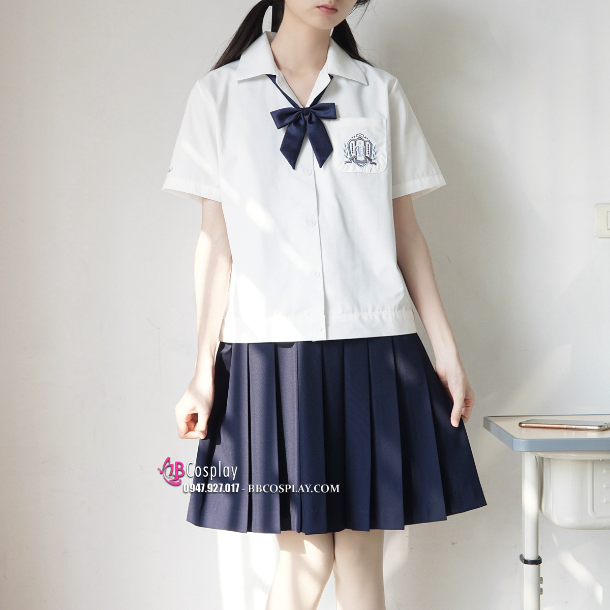 Đồng Phục Nữ Sinh Hàn Quốc Màu Trắng Váy Xanh Đen