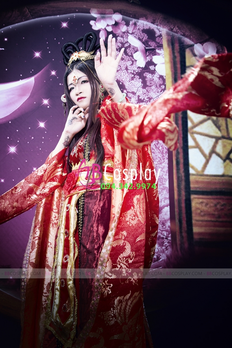 áo yếm gấm + váy dài + áo choàng gấm dài + đai + khăn choàng gấm dài
