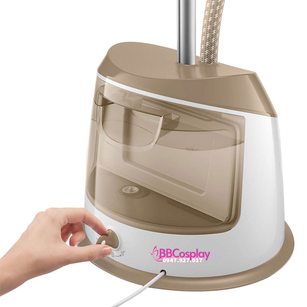 Bàn ủi hơi nước đứng Philips thiết kế gọn đẹp, sang trọng, tiện ủi quần áo ngay trên móc treo.