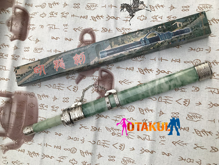 Chất liệu: lưỡi kiếm - kim loại không gỉ, vỏ kiếm - nhựa cứng có hoa văn mã não