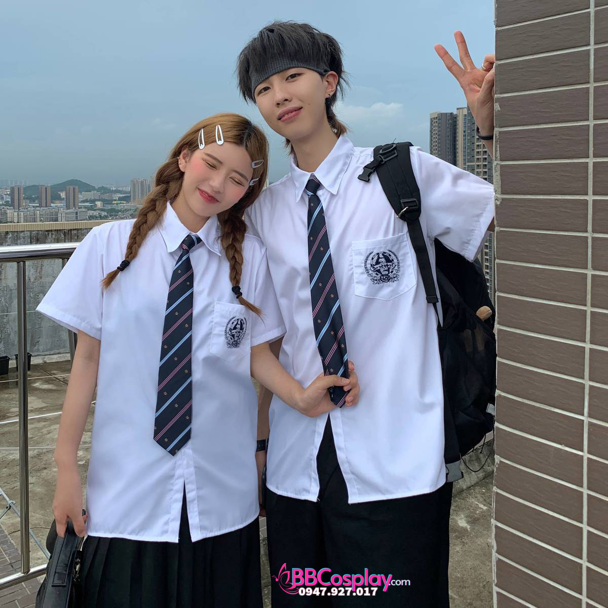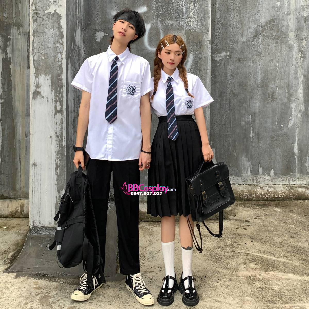 Đồng Phục Nam Sinh Áo Trắng Logo Xanh Dương