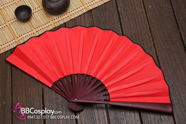 Quạt Xếp Trơn Cán Gỗ Mẫu Đỏ