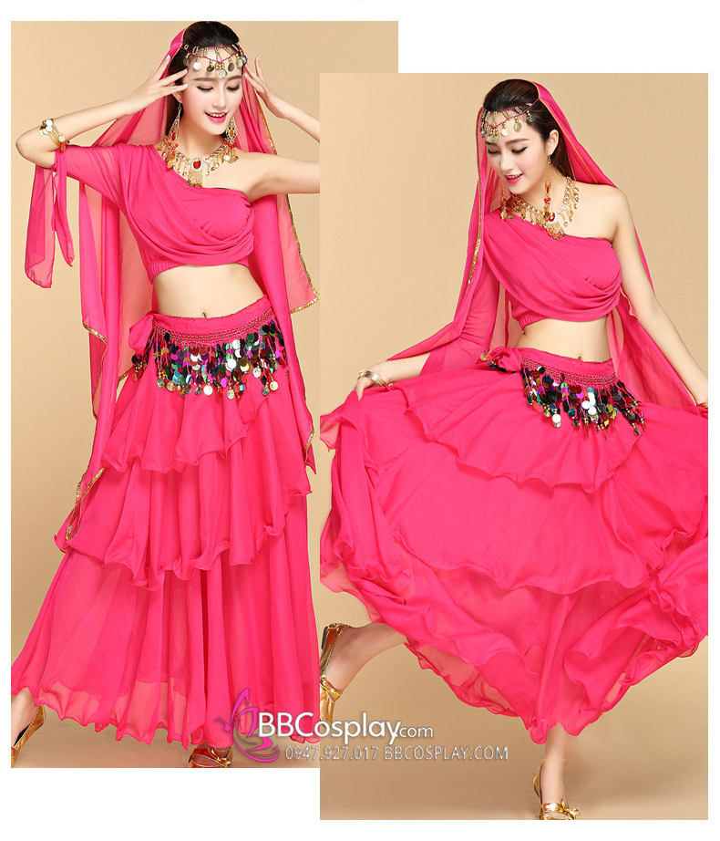 Trang Phục Múa Bụng Belly Dance Vai Chéo Màu Hồng