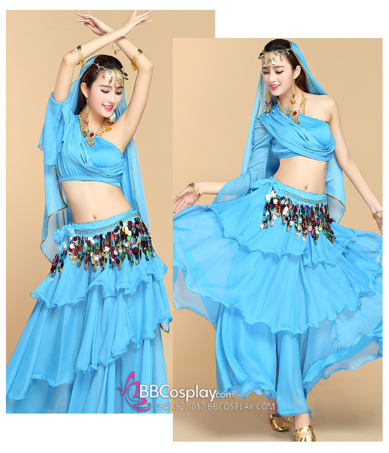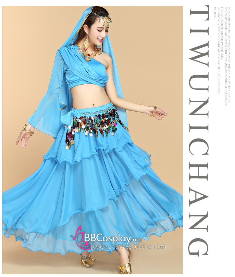 Trang Phục Múa Bụng Belly Dance Vai Chéo Màu Xanh Dương Nhạt