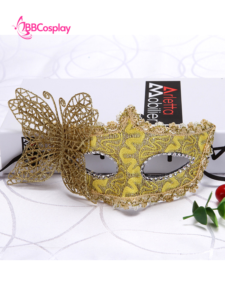 Mặt Nạ Nửa Mặt Ren Cài Bướm - Màu Vàng