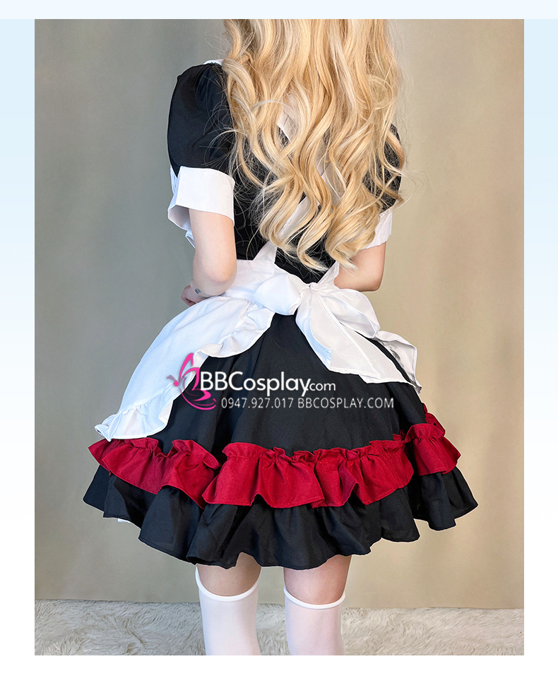 Đồ Nàng Hầu Maid Đen Đỏ Tạp Dề Trắng