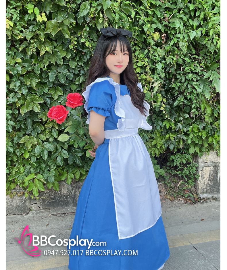 Đồ Nàng Hầu Maid Xanh Dương Tạp Dề Trắng Kèm Nhiều Nơ