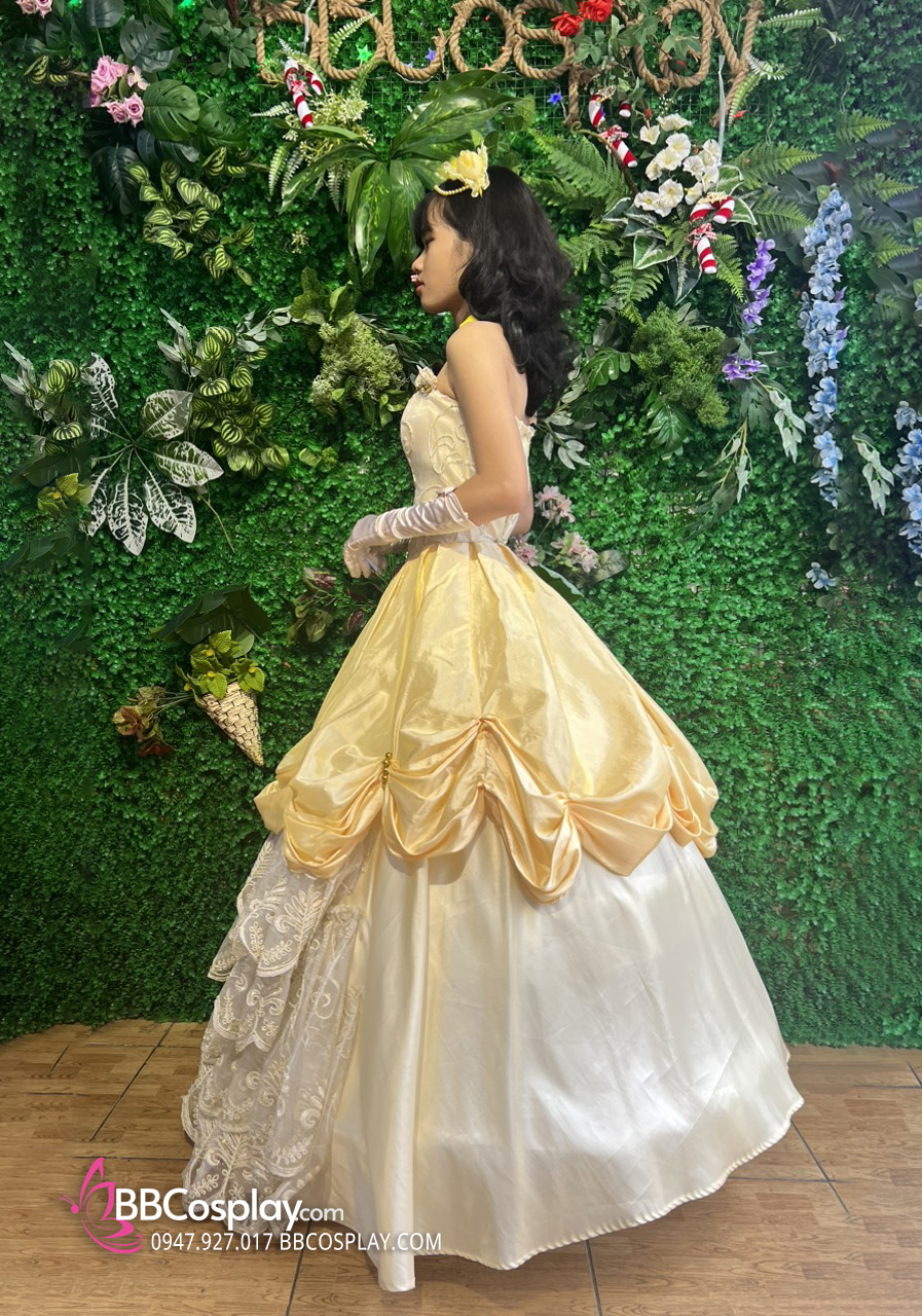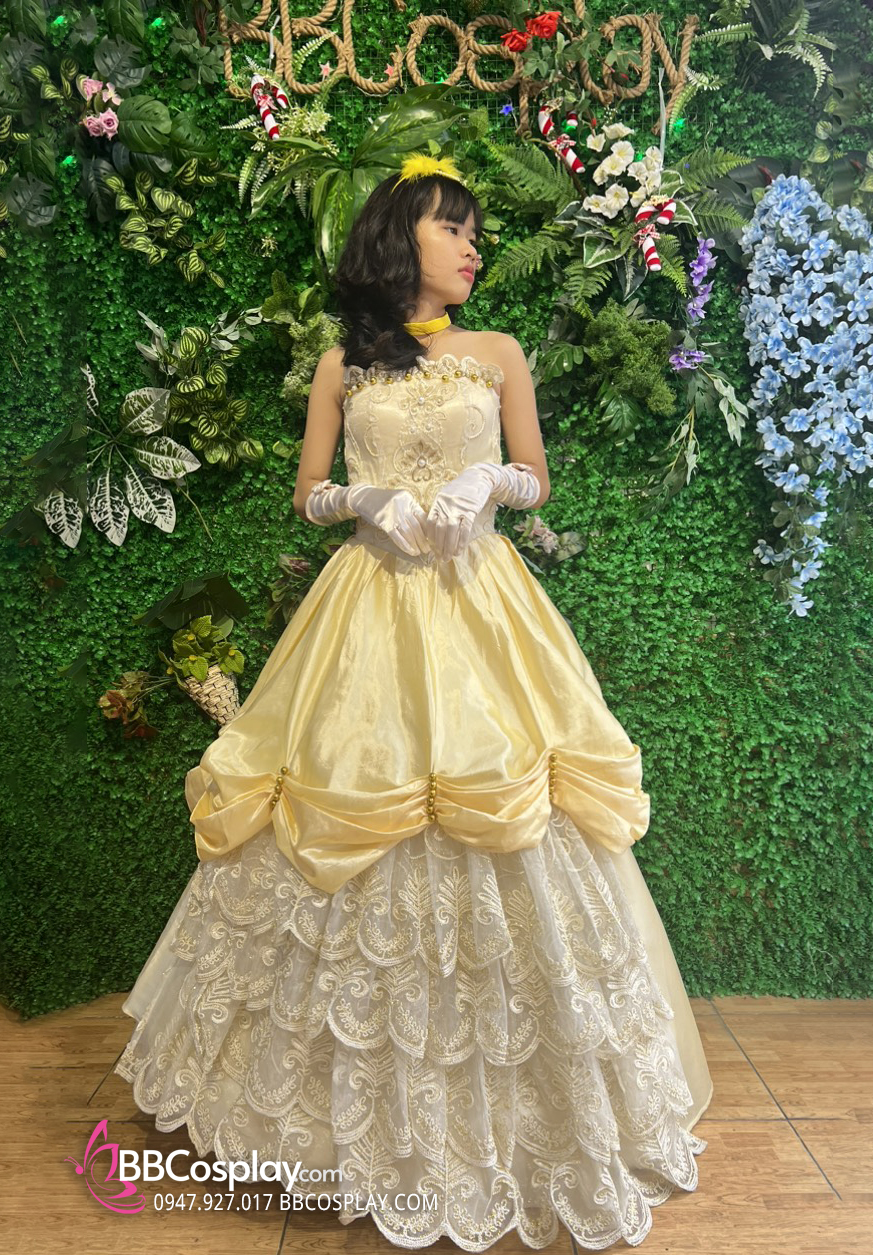 ( set nữ)đầm vàng + tùng phồng + vòng cổ + cài tóc + găng tay trắng