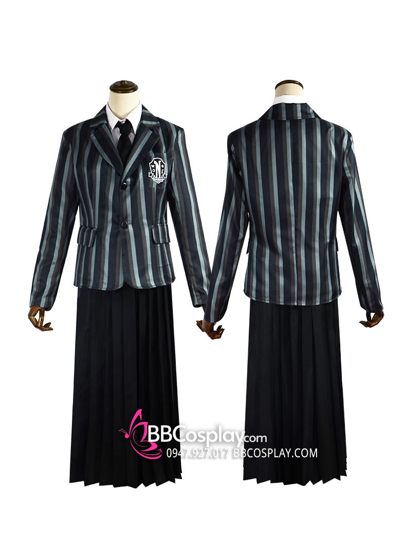 Đồ Wednesday - Đồng Phục Nữ Sinh Vest Đen Sọc Váy Đen - Wednesday 2022