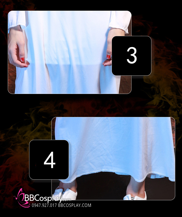 - Thành Phần: đầm trắng dài (quý khách mua về dùng máu giả hoặc màu để tạo vết máu theo ý thích)
