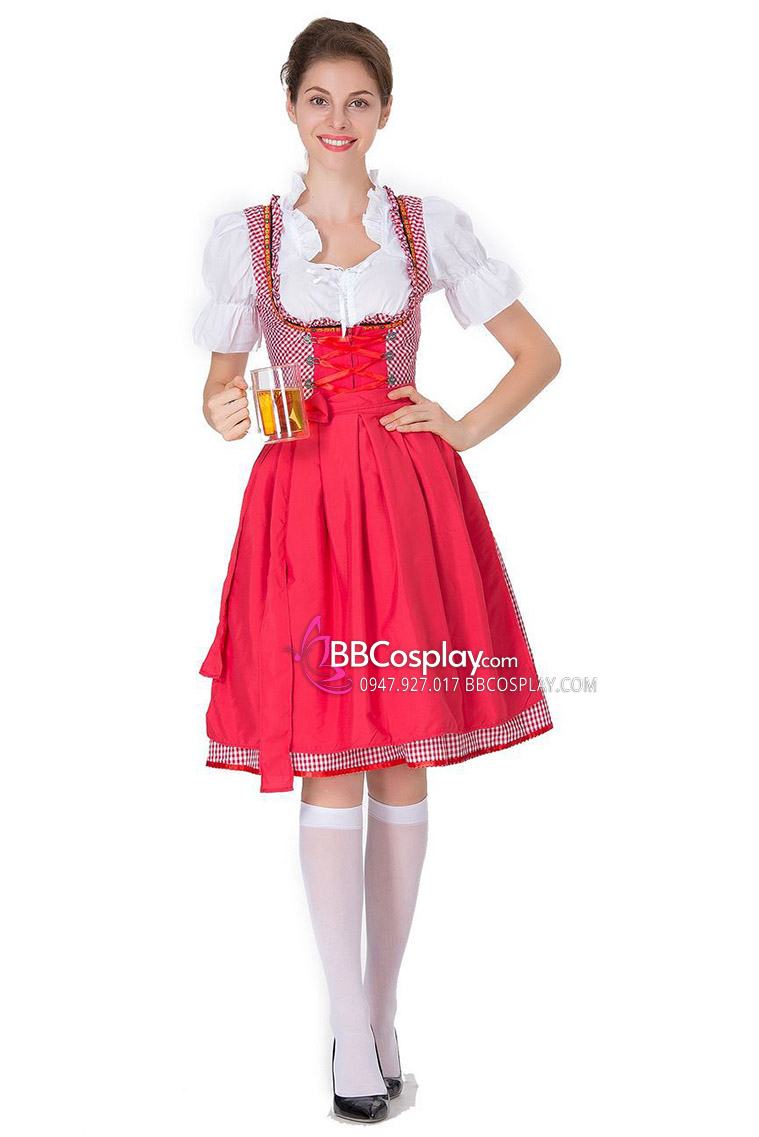 Đồ Nàng Hầu Maid Xanh Dương Tạp Dề Trắng Kèm Nhiều Nơ