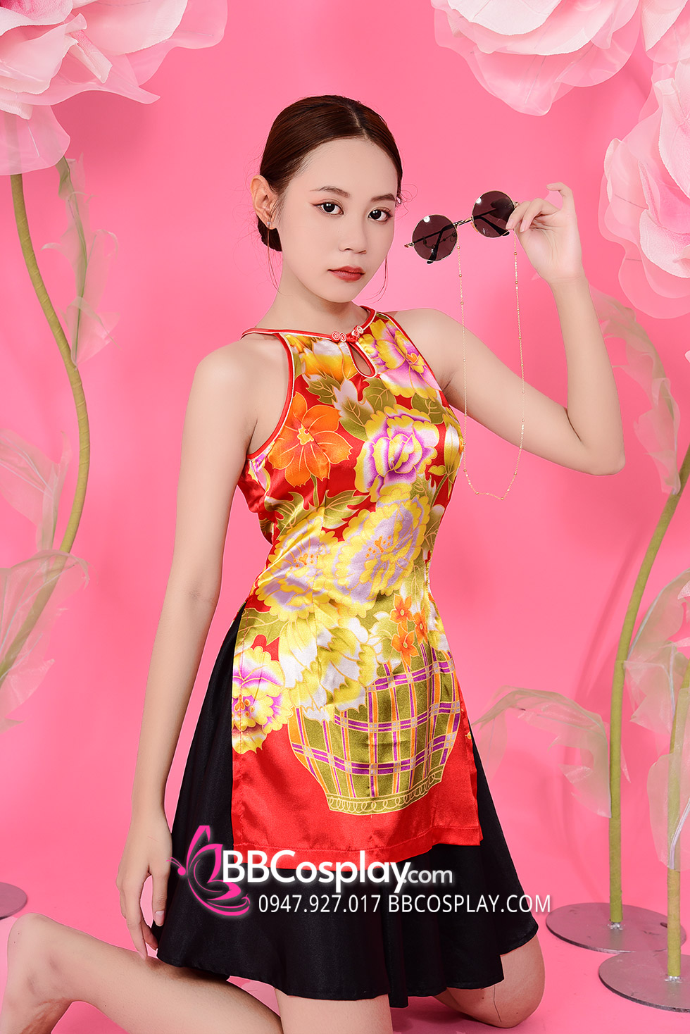 Xường Xám Váy Phi Áo Đỏ Váy Đen