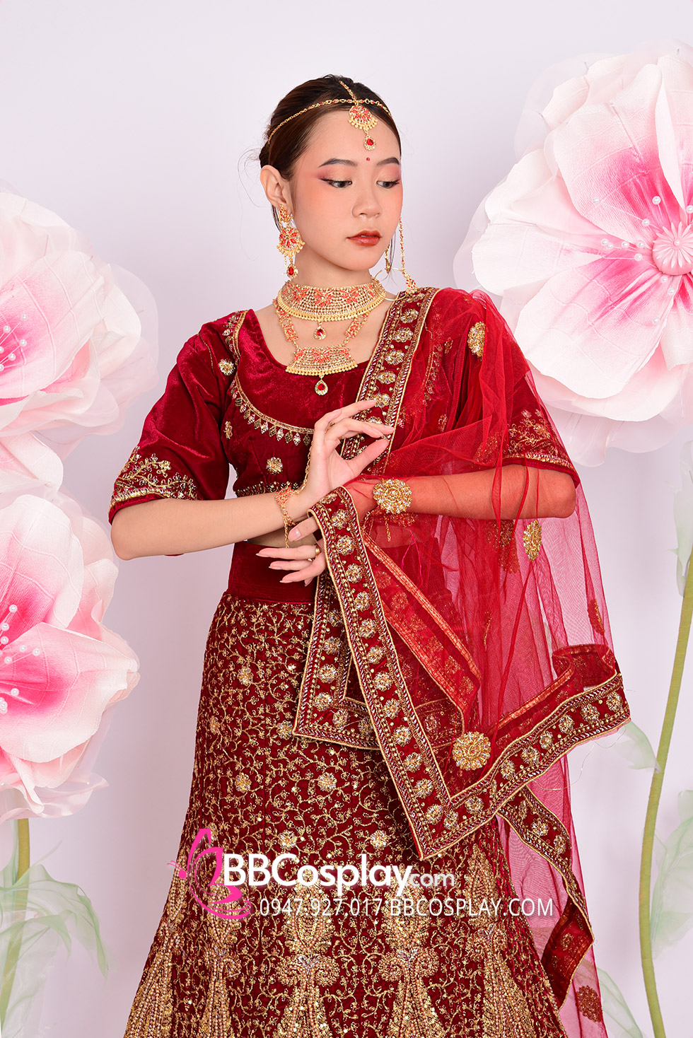 Trang Phục Lehanga Đỏ Gạch Cháy