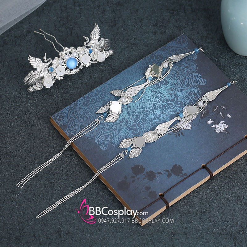 Bộ Trâm Cài Cổ Trang Thu Nguyệt Tone Trắng Xanh