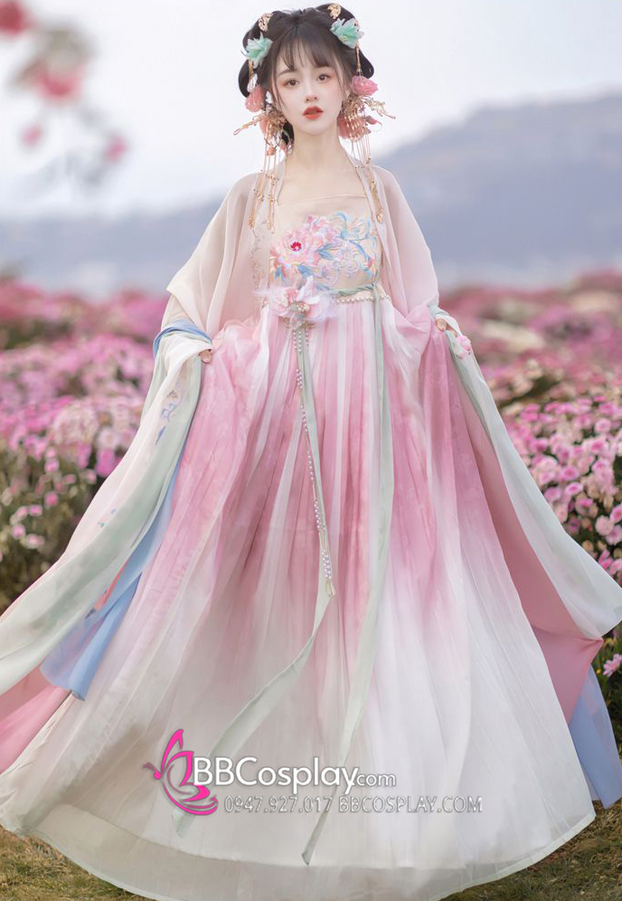Hán Phục Cựu Mộng Hoa Tình - Hồng Xinh Xắn Váy Ombre