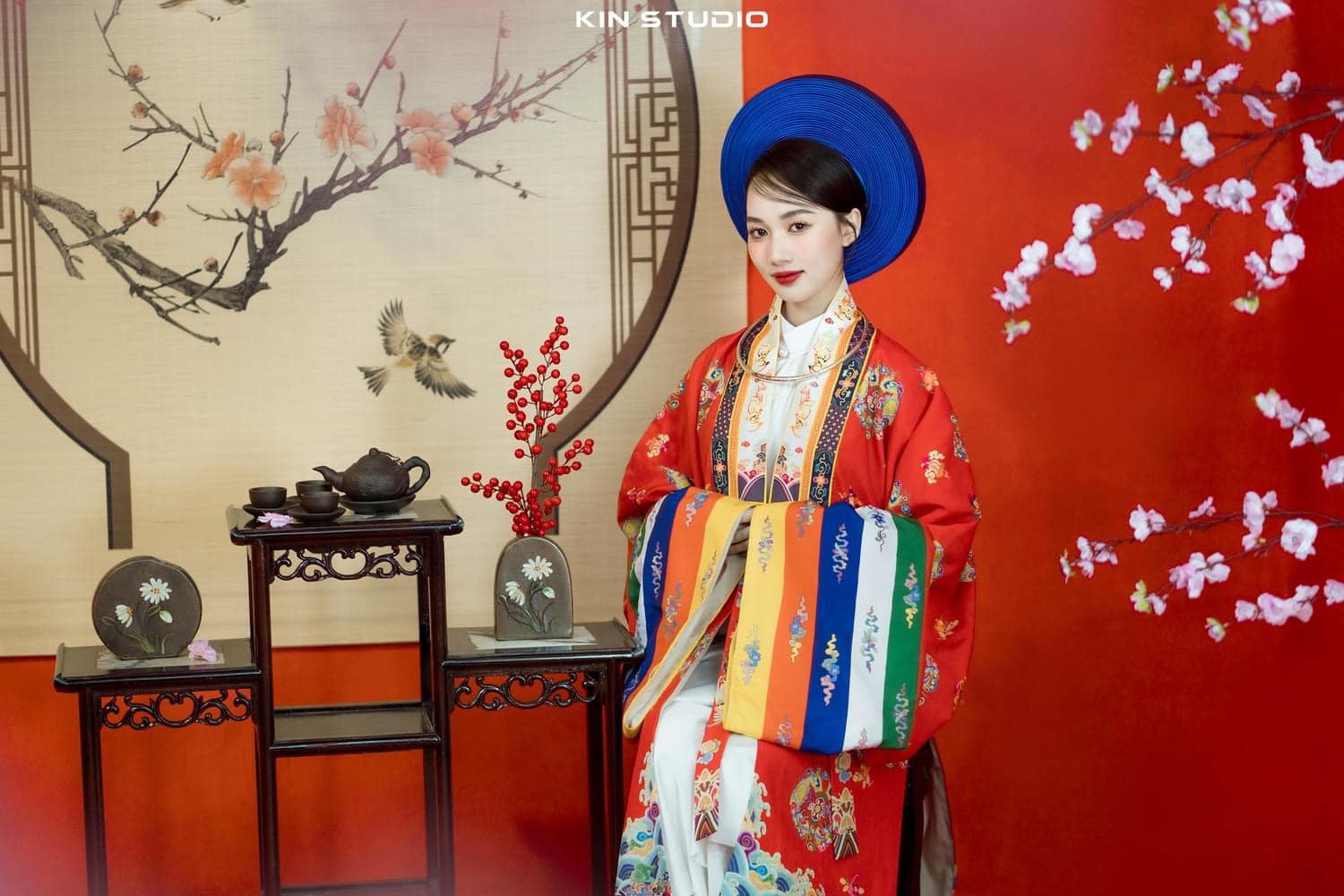 áo Nhật Bình + áo lót ngũ thân tay chẽn + quây đỏ + mấn