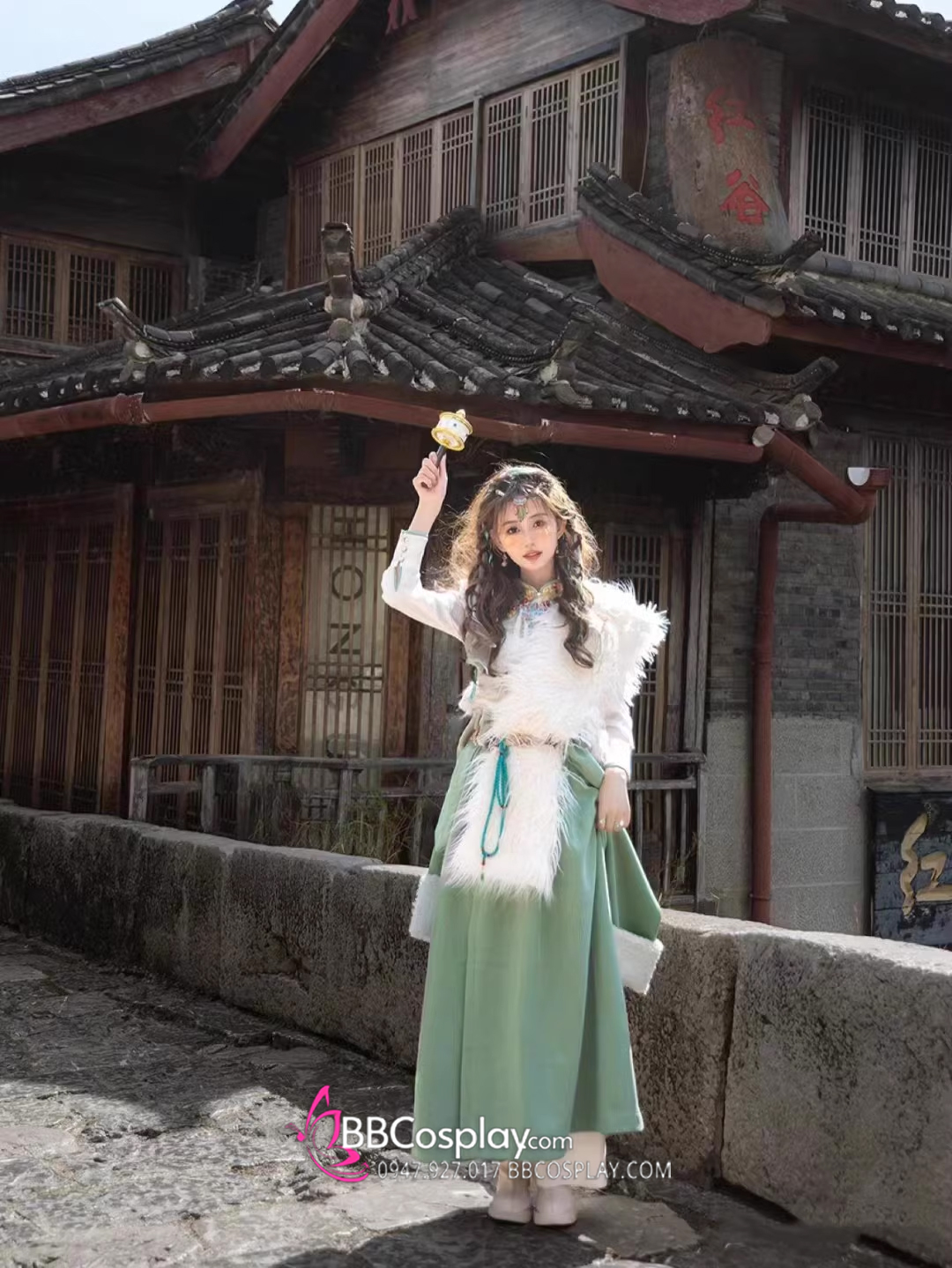 Trang Phục Nữ Mông Cổ Tây Vực Xanh Mạ Pastel