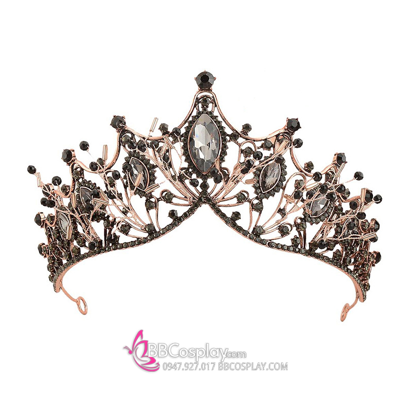 Vương Miện Cài Tóc Đính Đá Đen Quyền Lực