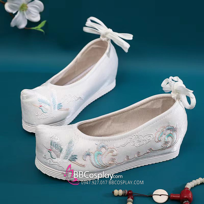 Giày Hán Phục Thêu Hạc Mũi Nhọn