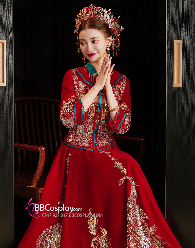 Trang Phục Cưới Phong Cách Trung Hoa Mẫu Đỏ Xanh Đính Cườm Long Phụng 2024