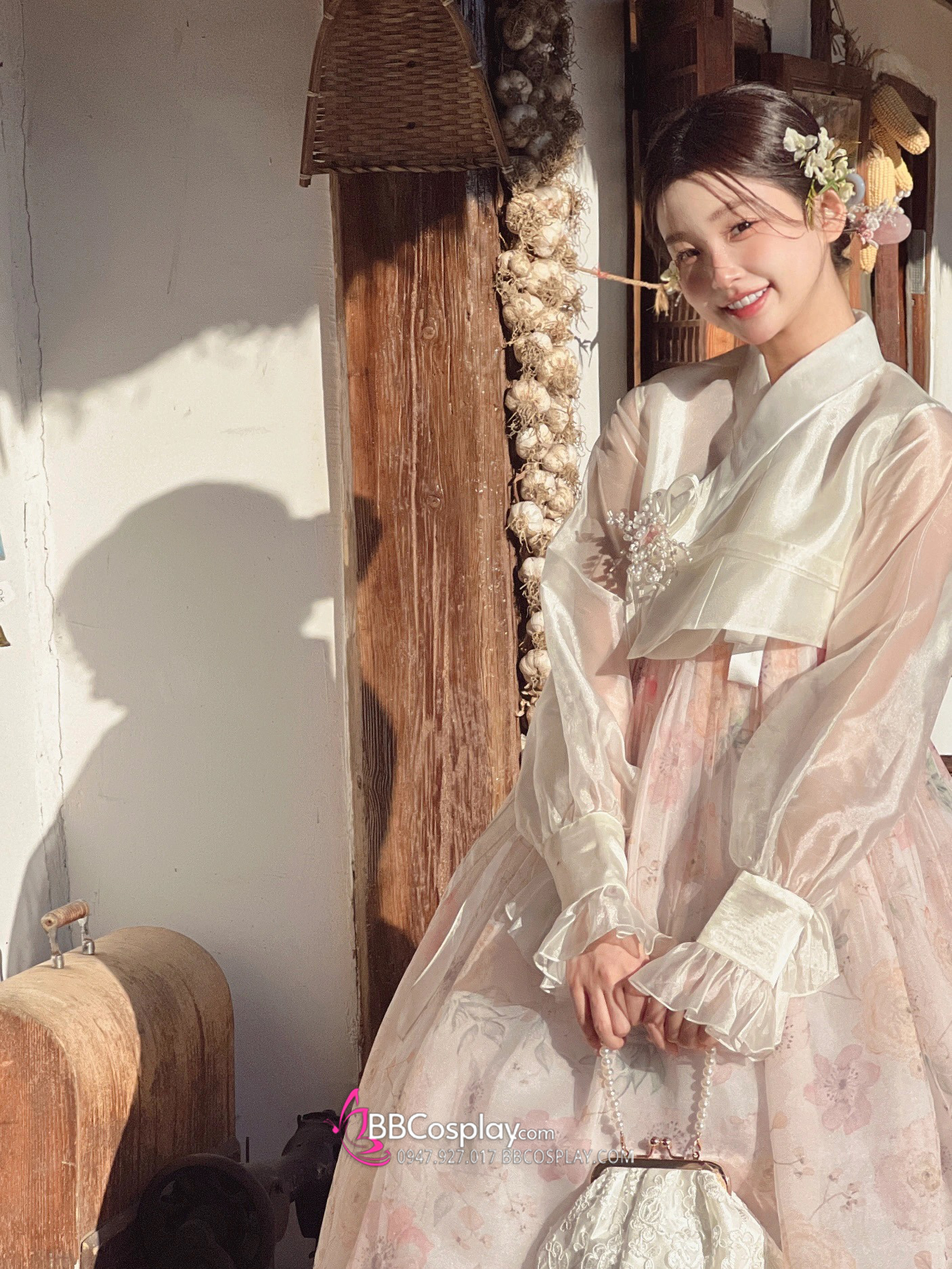 Hanbok Hàn Quốc Hiện Đại Áo Trắng Váy Hoa
