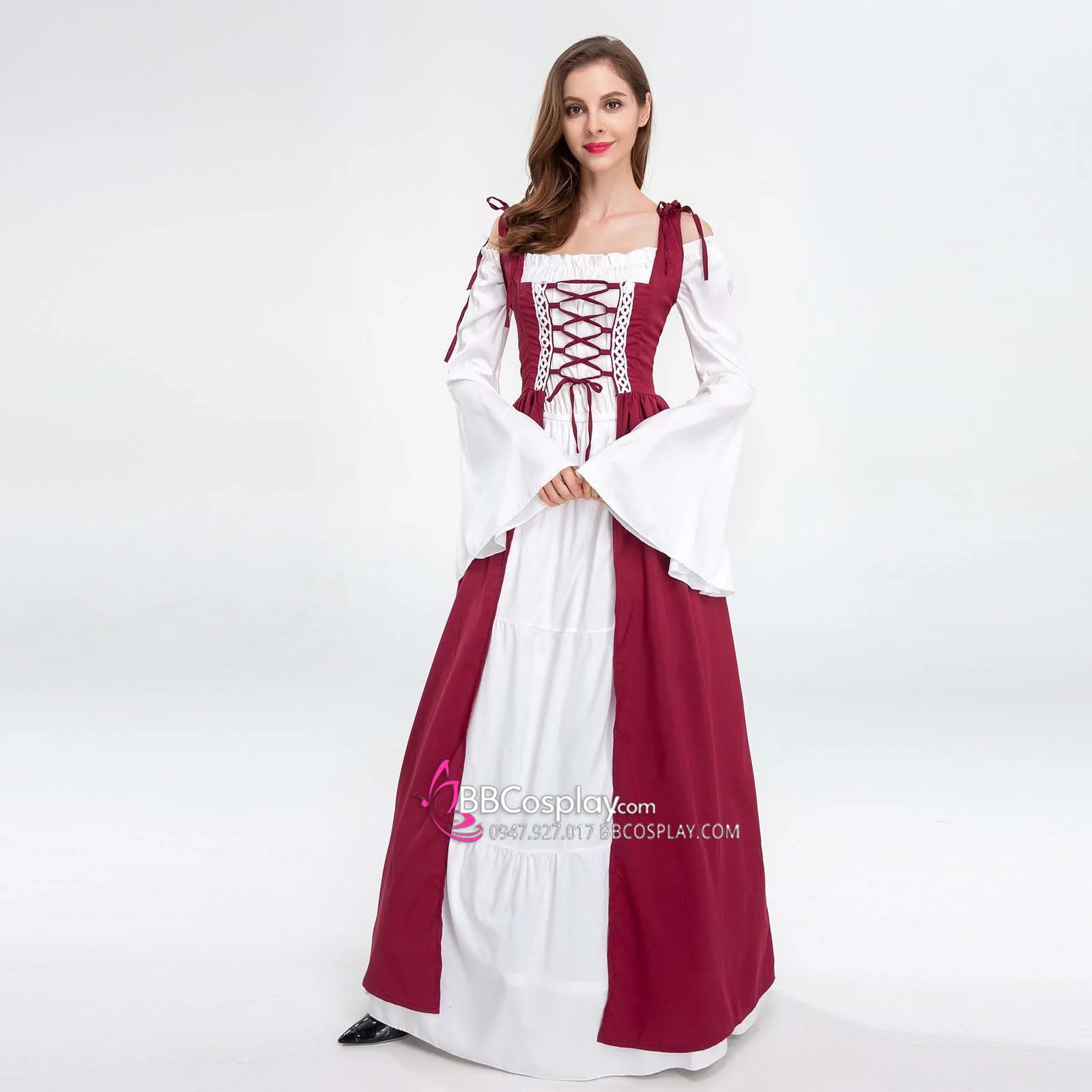 Đầm Phục Hưng Trung Cổ Phong Cách Viễn Tưởng - Màu Đỏ Đô