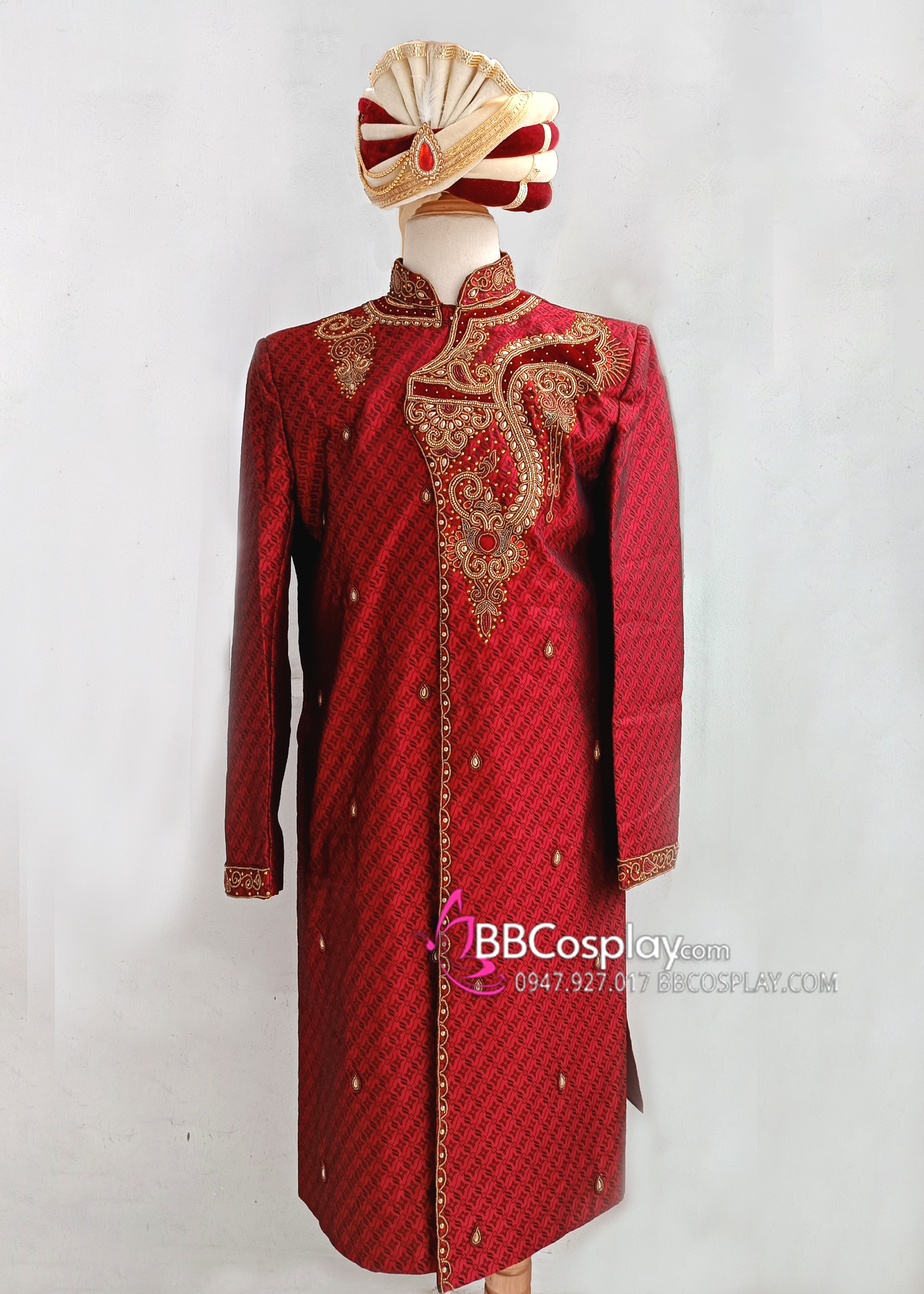 Trang Phục Hoàng Tử Ấn Độ Tone Đỏ Hoàng Gia Kèm Nón