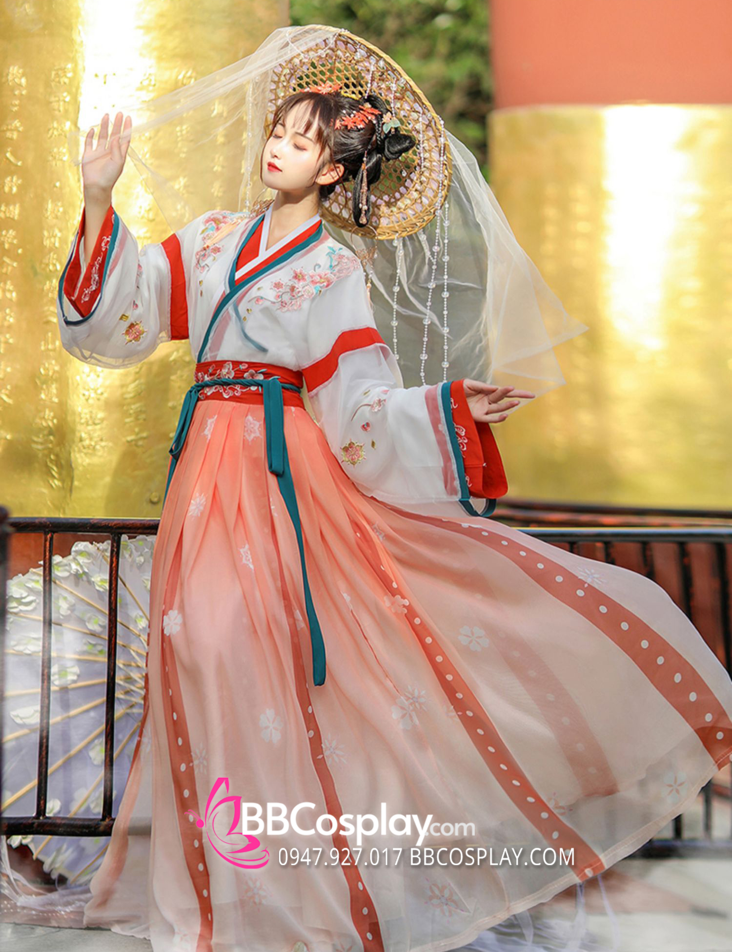 Thành phần: áo trên + váy ngang ngực xoè 6m + phi bạch