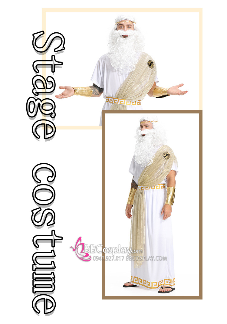 full set (áo liền choàng kim tuyến + thắt lưng + 2 băng tay vàng + vòng nguyệt quế nhỏ + tia sét)