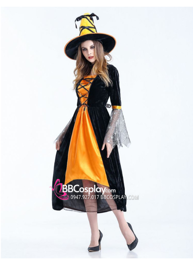 Trang Phục Phù Thuỷ Cổ Điển Tone Cam Đen Có Kèm Nón