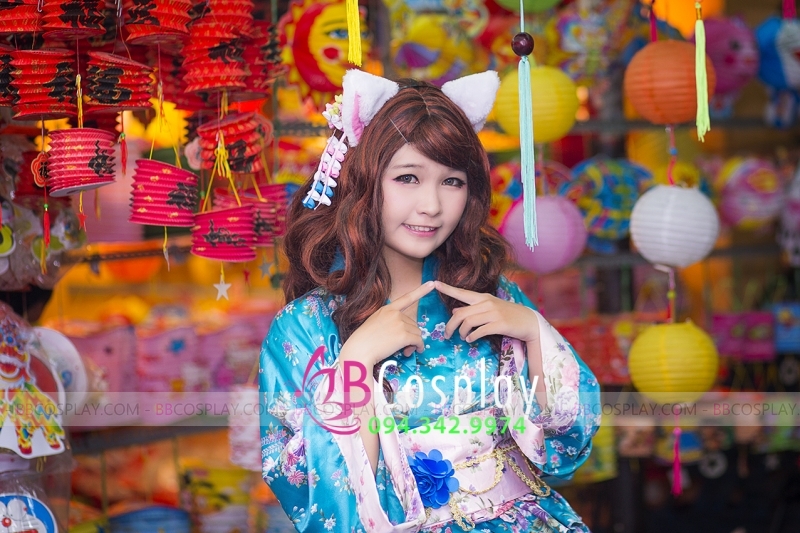 Đồ Nàng Hầu Maid Xanh Dương Tạp Dề Trắng Kèm Nhiều Nơ